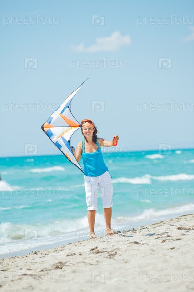 Женщина с воздушным змеем на пляже