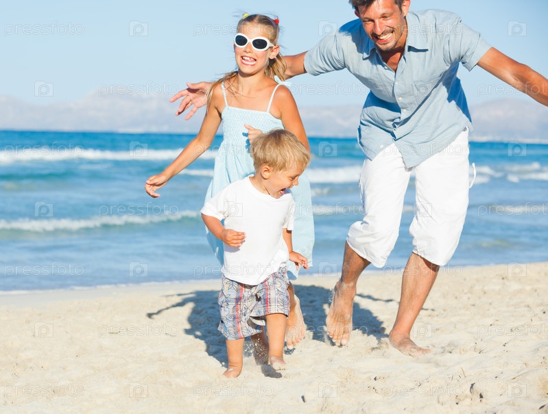 Семья на тропическом пляже