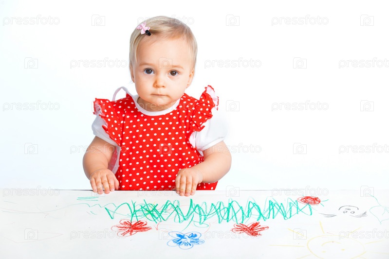 Маленькая девочка рисует цветными карандашами