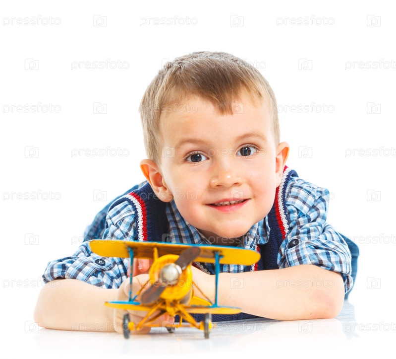 Мальчик играет с самолетиком