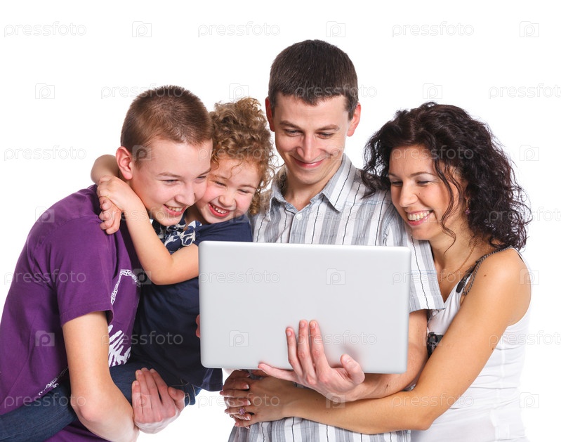 Семья с ноутбуком
