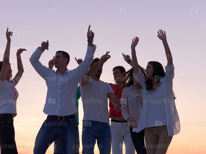 Люди на вечеринке на закате