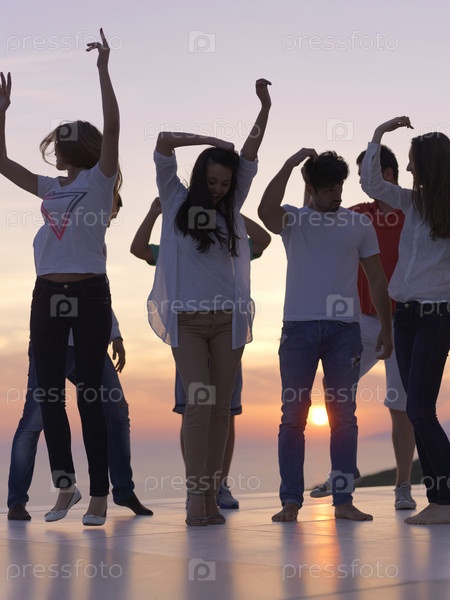 Люди на вечеринке на закате
