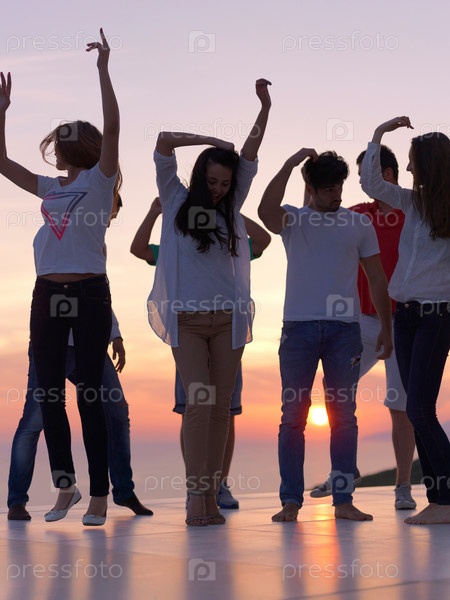 Люди на вечеринке на закате
