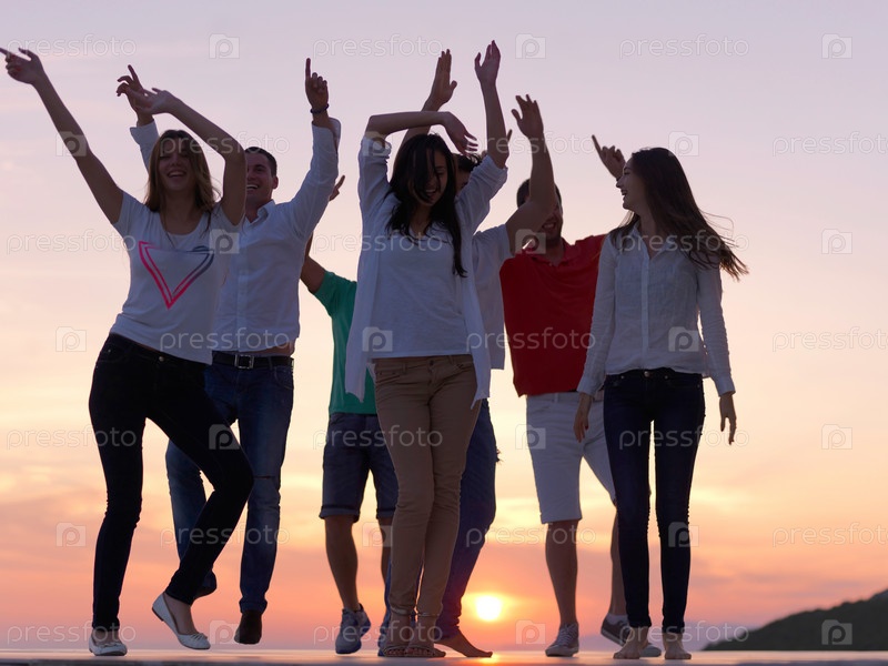 Люди на вечеринке на закате