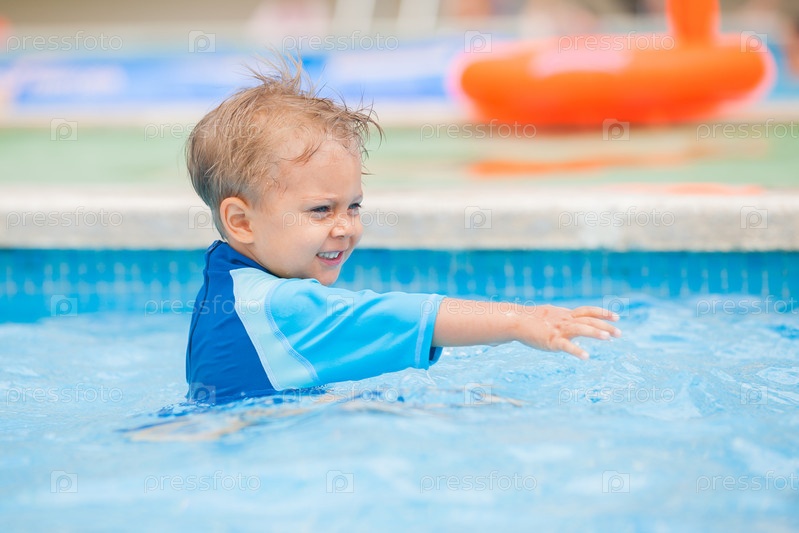 Мальчик играет в бассейне