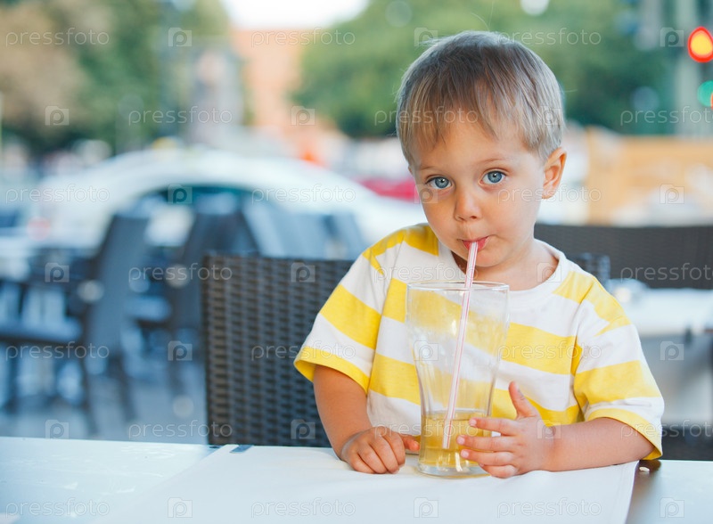 Прелестный мальчик пьет сок