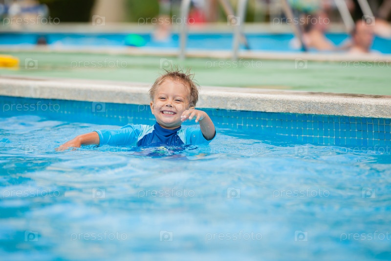 Мальчик играет в бассейне