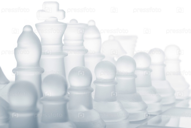 Белые шахматы стоят на белом фоне