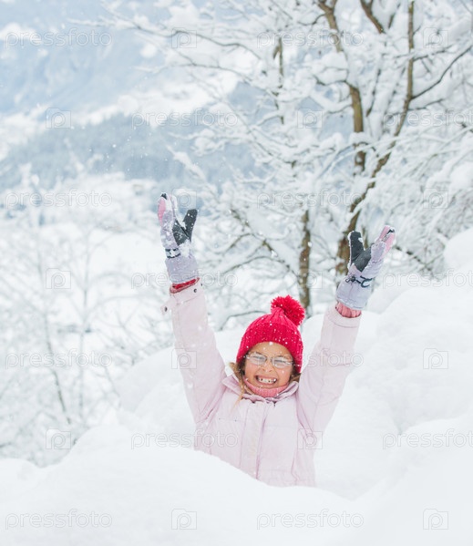 Счастливая девочка на природе в зимний день