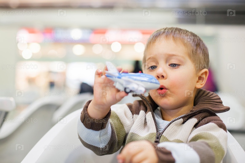 Маленький мальчик с игрушечным самолетом