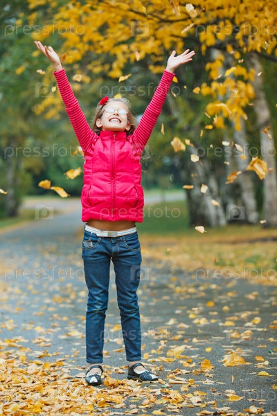 Девочка гуляет в осеннем парке