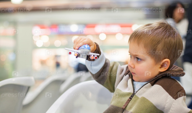 Маленький мальчик с игрушечным самолетом