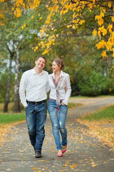 Романтическая пара на осенней прогулке