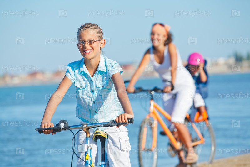 Семья едет на велосипедах