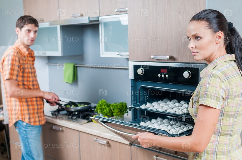 Молодая пара на кухне