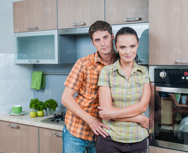Молодая пара на кухне