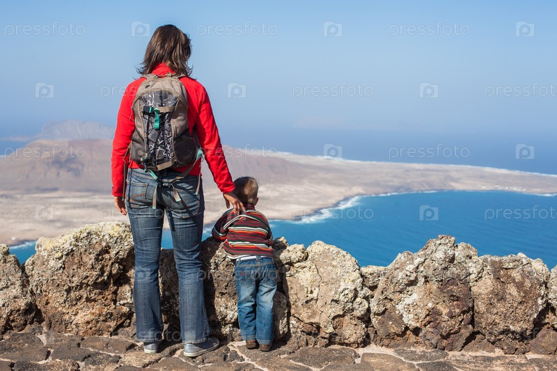 Мать и сын стоят на краю скалы