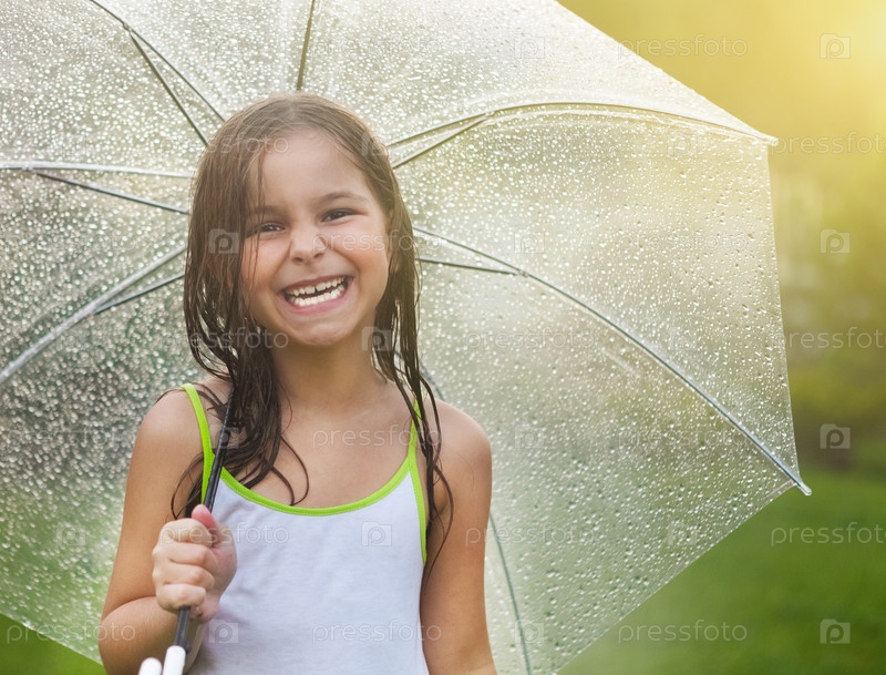 Маленькая девочка под зонтиком в дождливый день