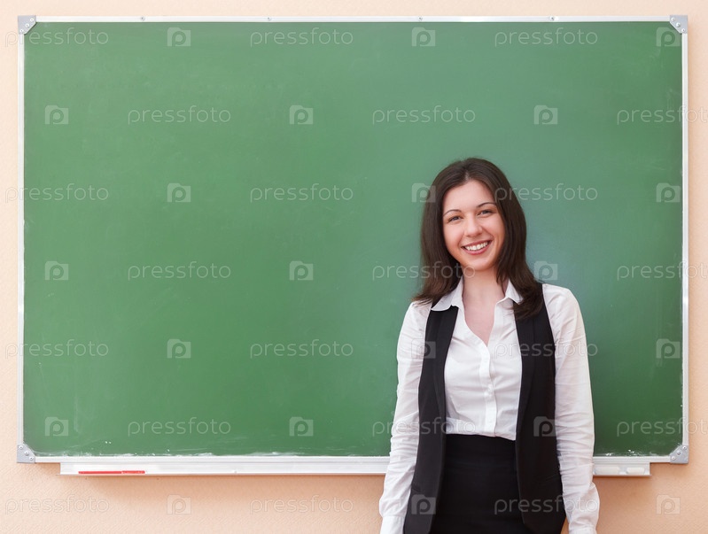 Студентка стоит возле чистой доски