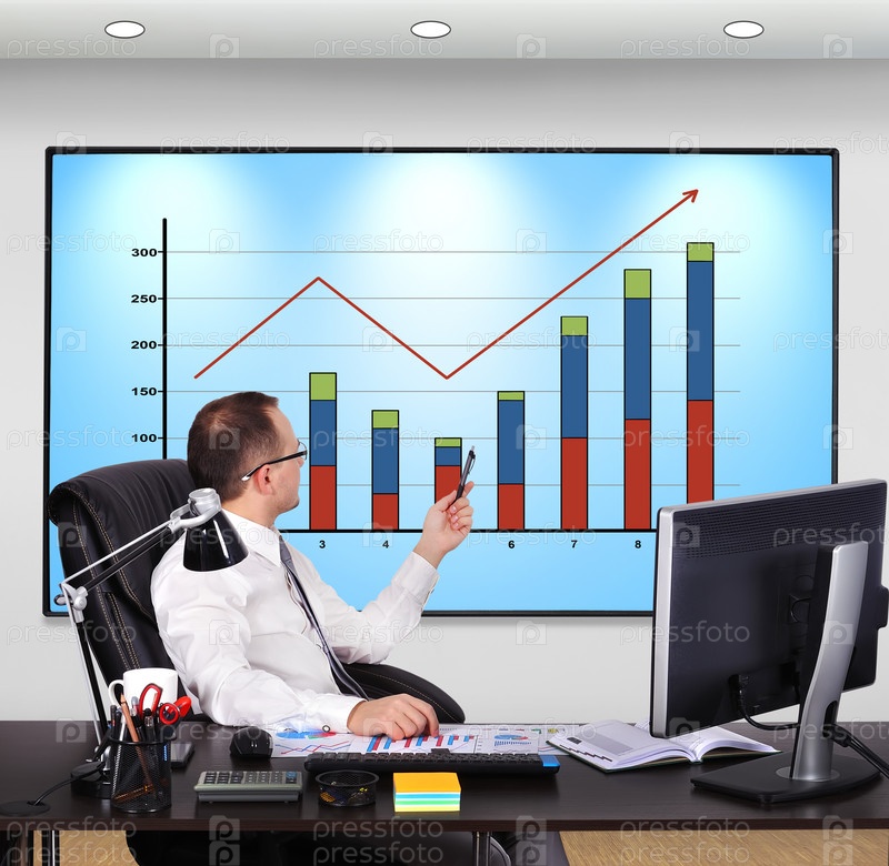 Бизнесмен указывает на диаграмму