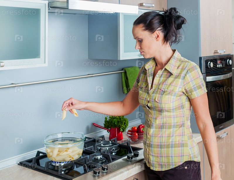Женщина готовит еду в кухне
