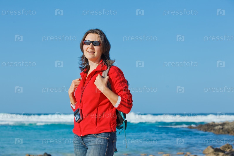 Молодая женщина с рюкзаком