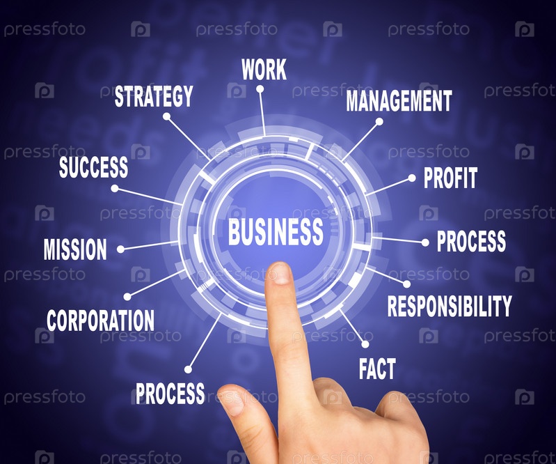 Рука указывает на слово "Бизнес"