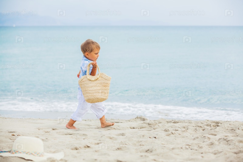Мальчик играет на тропическом пляже
