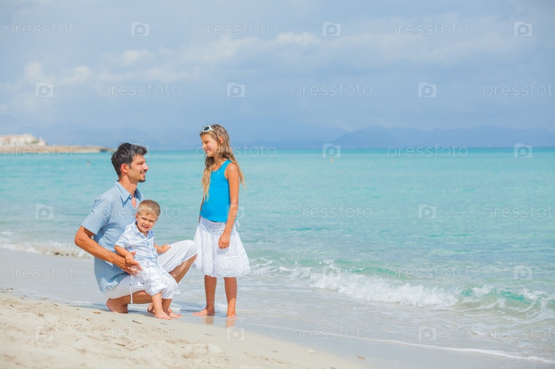 Отец с детьми на пляже