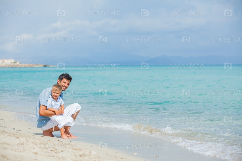 Отец с детьми на пляже