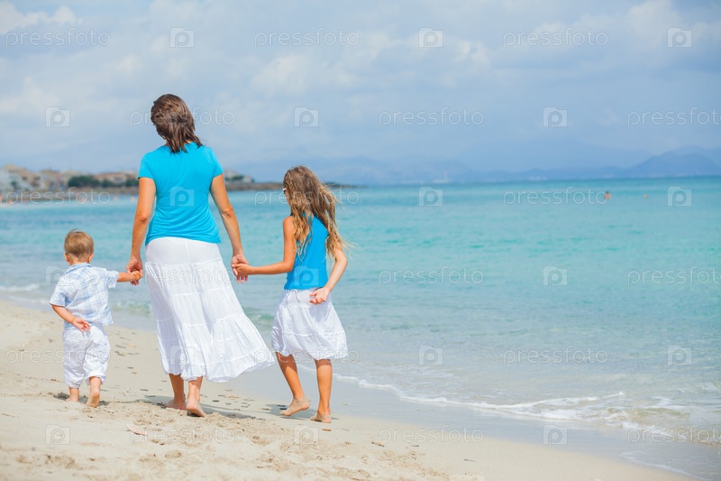 Мать с детьми на пляже
