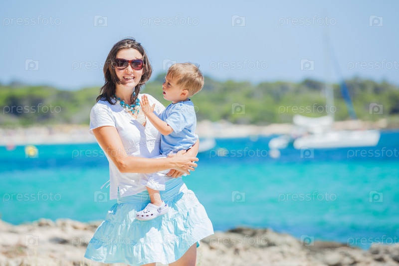 Мать с сыном на пляже