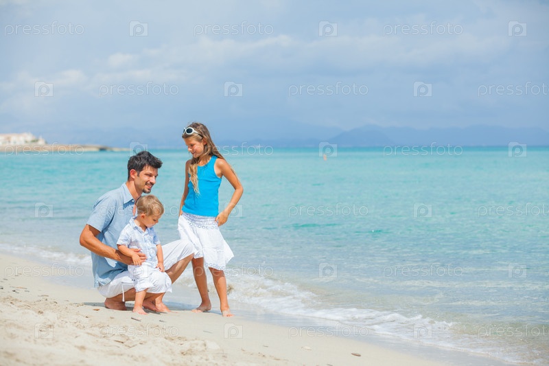 Отец с детьми на пляже