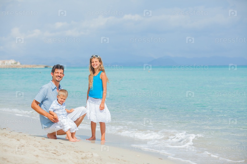 Отец с детьми на пляже