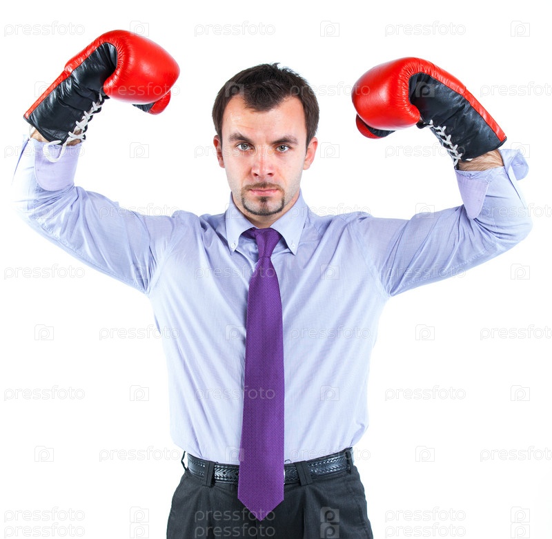Деловой человек в красных боксерских перчатках