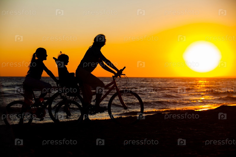 Силуэты матери с детьми на велосипедах