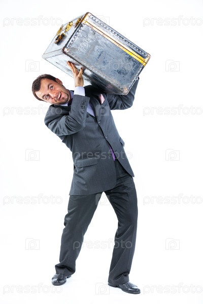Деловой человек с большим старым чемоданом