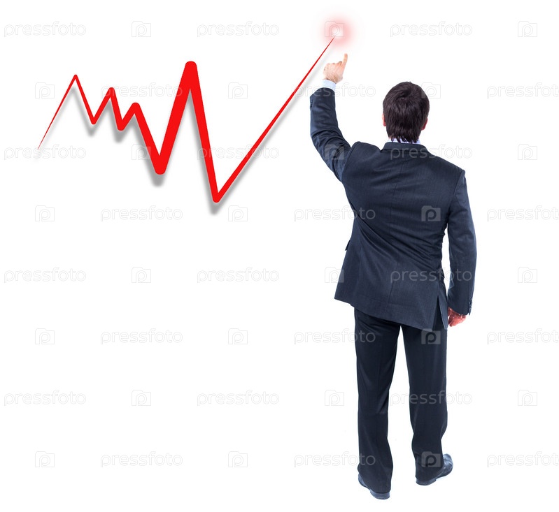 Деловой человек указывает на график