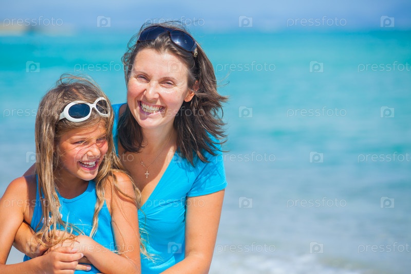 Семья идет на тропическом пляже