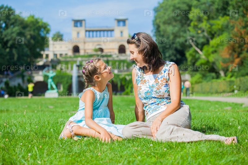 Девочка с матерью в парке летом