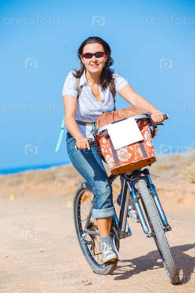 Женщина на велосипеде на природе