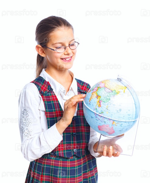 Школьница с глобусом