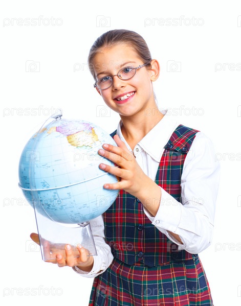 Школьница с глобусом