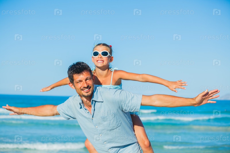 Отец и дочь на пляже