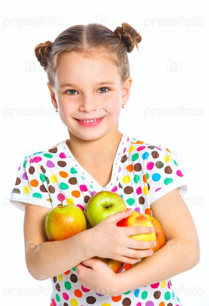 Счастливая девушка с яблоками