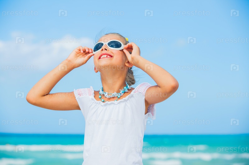 Девочка в солнцезащитных очках на пляже