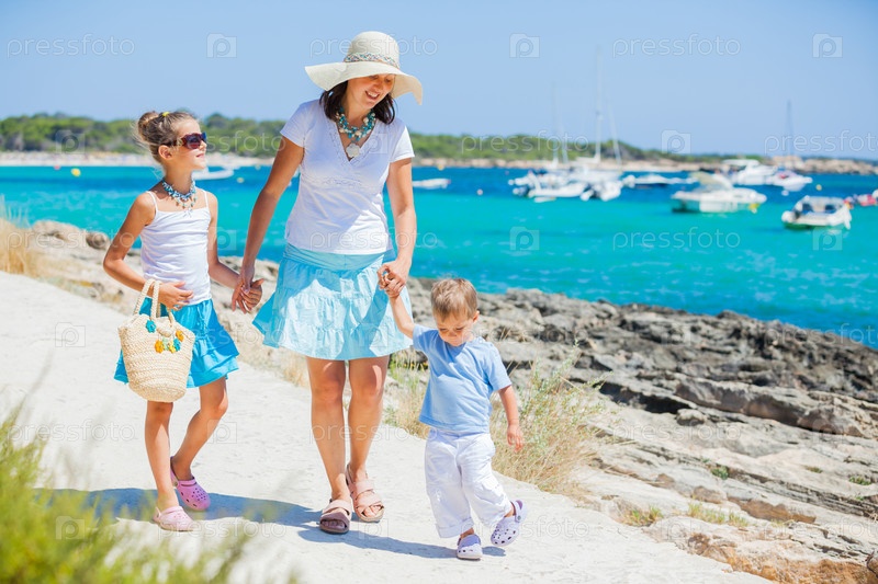 Семья из трех человек на пляже