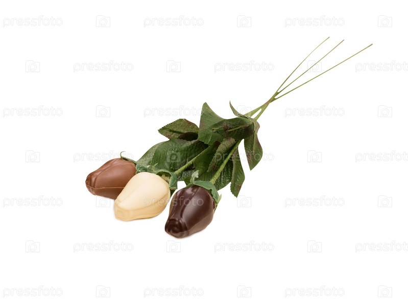 Три шоколадных розы, изолированные на белом фоне