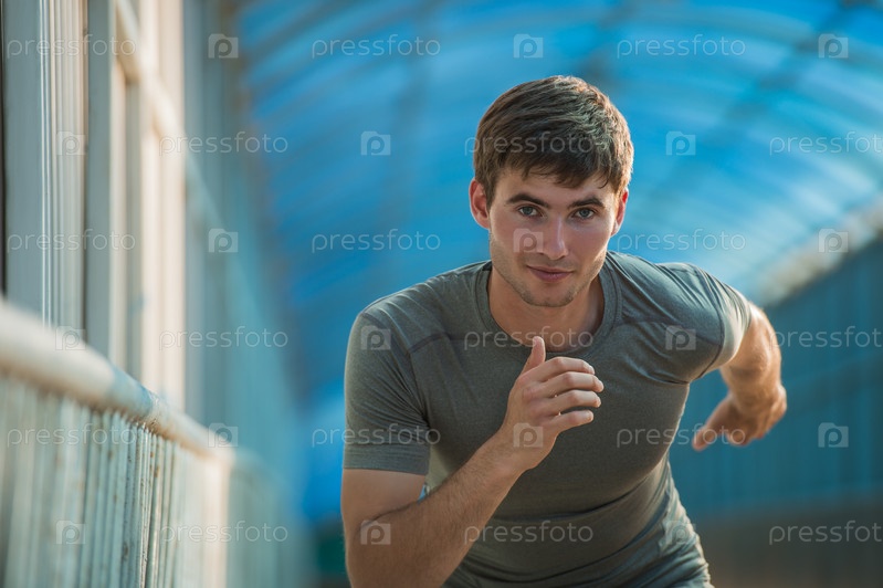 Бегущий спортсмен в городе
